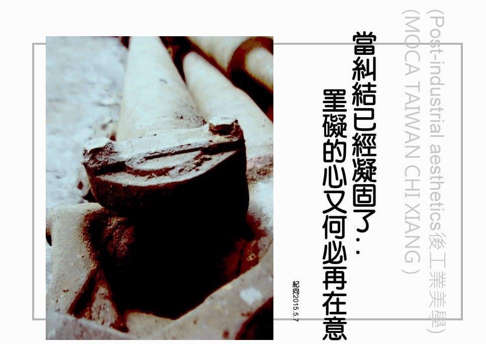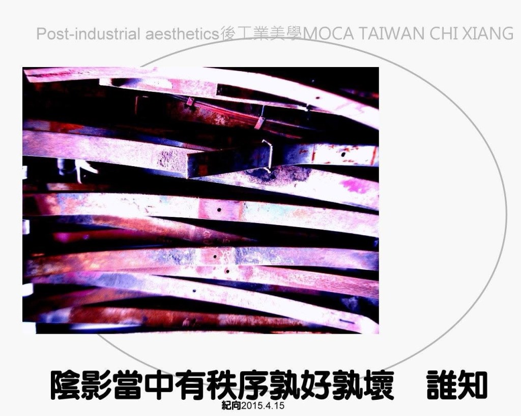存在無處不美..探索後工業美學24件作品以後,更加確認自己,長年探討非人文美學得觀念。,或許如此作品的整理,只是一種後工業革命以後,一種工業場域滯留的現象環境,但是對應存在人文而來的觸感!確實也讓我對於如此環境現象,一種倍有感覺內在生命的觸動。因為存在無處不在,而如此後工業革命以後,或許我們轉換角度以美的形式,來看待如此現象美的幽度,而延伸如此人以外存在美學的絕對可能。