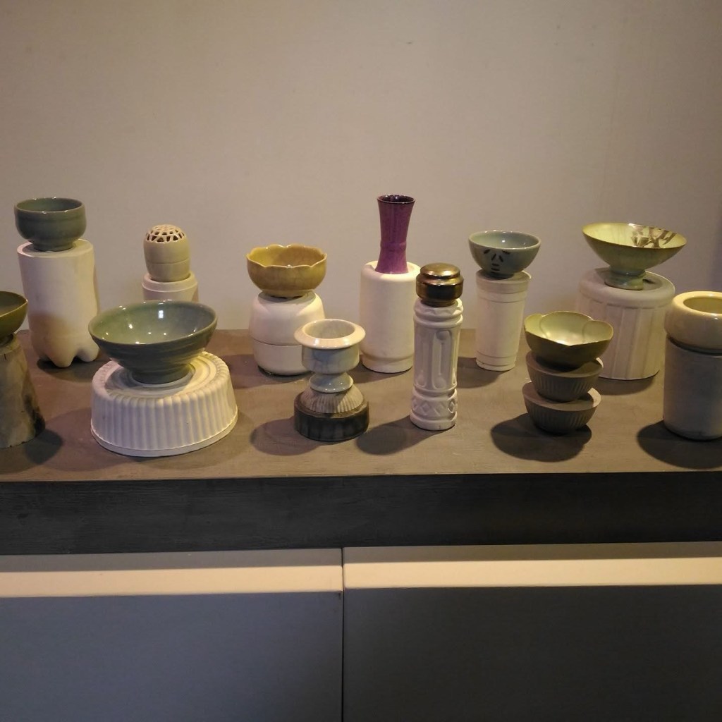 如此一位藝術家一位大生活形式的藝術家,除卻一般認知藝術絕對的繪畫雕塑以外,似乎已將藝術涵養的養分,也轉注於青瓷深度研究的探索,尤其近年他除了將青瓷作為創作,也由青瓷充分展現了藝術存在的形式,而他也結合自我藝術的概念,與一種來自田地農家書香子弟的面向,卻由一種現代藝術絕對的類裝置觀念,來展現他青瓷素材的裝置的大物件。