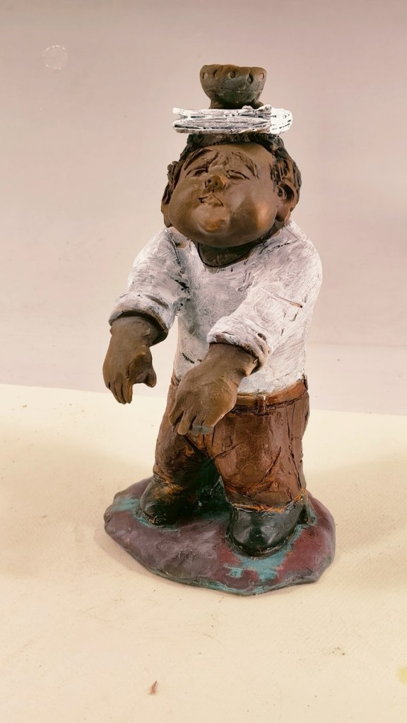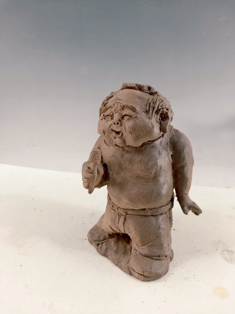 而此面對張舒嵎作品,你會發覺好像在此時空好像回流一般,因為藝術家張舒嵎的作品。不表現偉大卻如此的平實,看不到華麗卻是如此的平易近人,而讓你一下子好像跳脫,存在現實的喧囂與虛無,因為你觸目所及的陶偶作品,已經無語的與你冉冉道來。細說多少細微存在的人生觀,而人生的人生,不就是要這樣初始回復,所以在此張舒嵎的作品,也讓我們一起面對回到生命的初衷。