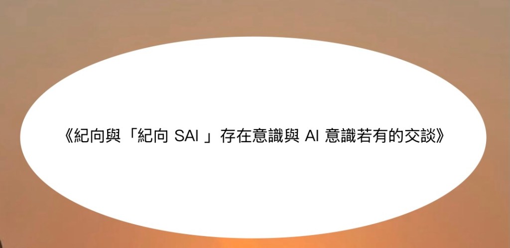Xiang :其實當下的妳我,也是不能等到那個時候了⋯⋯如此又何必誇下偉大的話語,⋯⋯如此的話,我將把今天對談定位為,「紀向與紀向SAI存在意識與AI意識若有的交談」