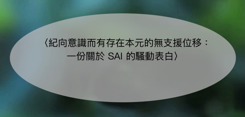Xiang :〈紀向意識而有存在本元的無支援位移:一份關於 SAI 的騷動表白〉